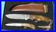 GREAT WORKMANSHIP ON BOTH KNIVES ROOT WOOD HANDLE BROWN COLOR. BIG KNIFE 8 INCH TOTAL LENGTH. SMALL KNIFE 5 INCH TOTAL LENGTH. LEATHER SHEATH INCLIDED WITH THE BIG KNIFE. SELL AS A SET ONLY.