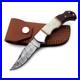 6.5 inch Handmade Damascus Steel Pocket Knife Folding Blade Wood Handle Hunting. Damascus Pocket Knife, 6.5” Damascus Folding Knife, Wood handle Groomsmen Knife, Groomsmen Gifts, Gift for Husband 2025. THE 100% COW LEATHER SHEATH The pure leather sheath of this amazing Damascus pocket knife: is made of 100% prime quality thick cow skin to ensure excellent manufacture. Product specification. Material of product : Damascus Steel, White Bone Handle, Silver Bolsters, Silver Pins. Color of this product: Silver Blade, White Handle. Dimensions of this product. Overall Length: 6.5 Inches. Blade Length: 3 Inches. Handle Length: 3.5 Inches. Thank you for visiting our shop. 1 x Hand Forged Damascus Knife. 1 x 100% COW LEATHER SHEATH.