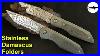 Hennie du Plessis Front flipper Folding Knife, Zirconium, Micarta, Damascus